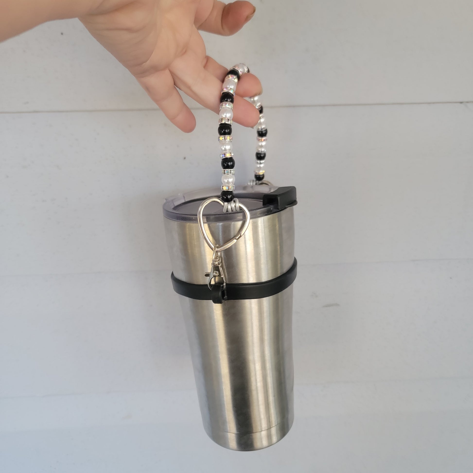 Stay hydrated in style with our handmade beaded water bottle strap! Featuring a stretchable silicone base and metal heart accents, it's both customizable and interchangeable. With keychain hooks on each side, you can easily strap your water bottle wherever you go. Stay hydrated (and stylish) all day long!