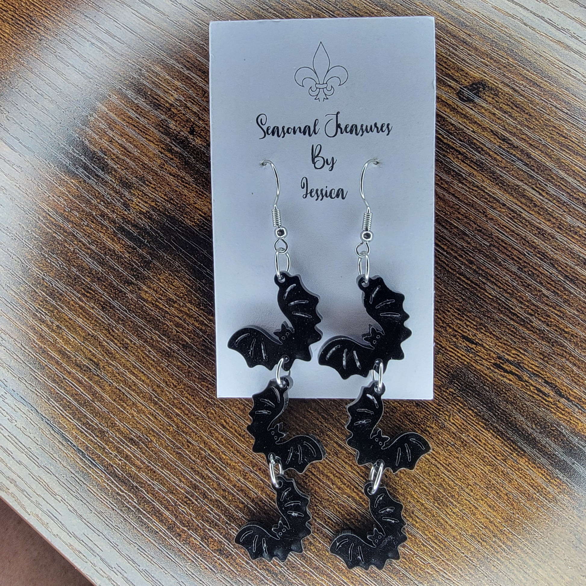 Add a spooky touch to your Halloween look with our bat earrings. Made with high-quality materials, these earrings are perfect for any Halloween party or costume. Stand out with these unique and festive earrings.