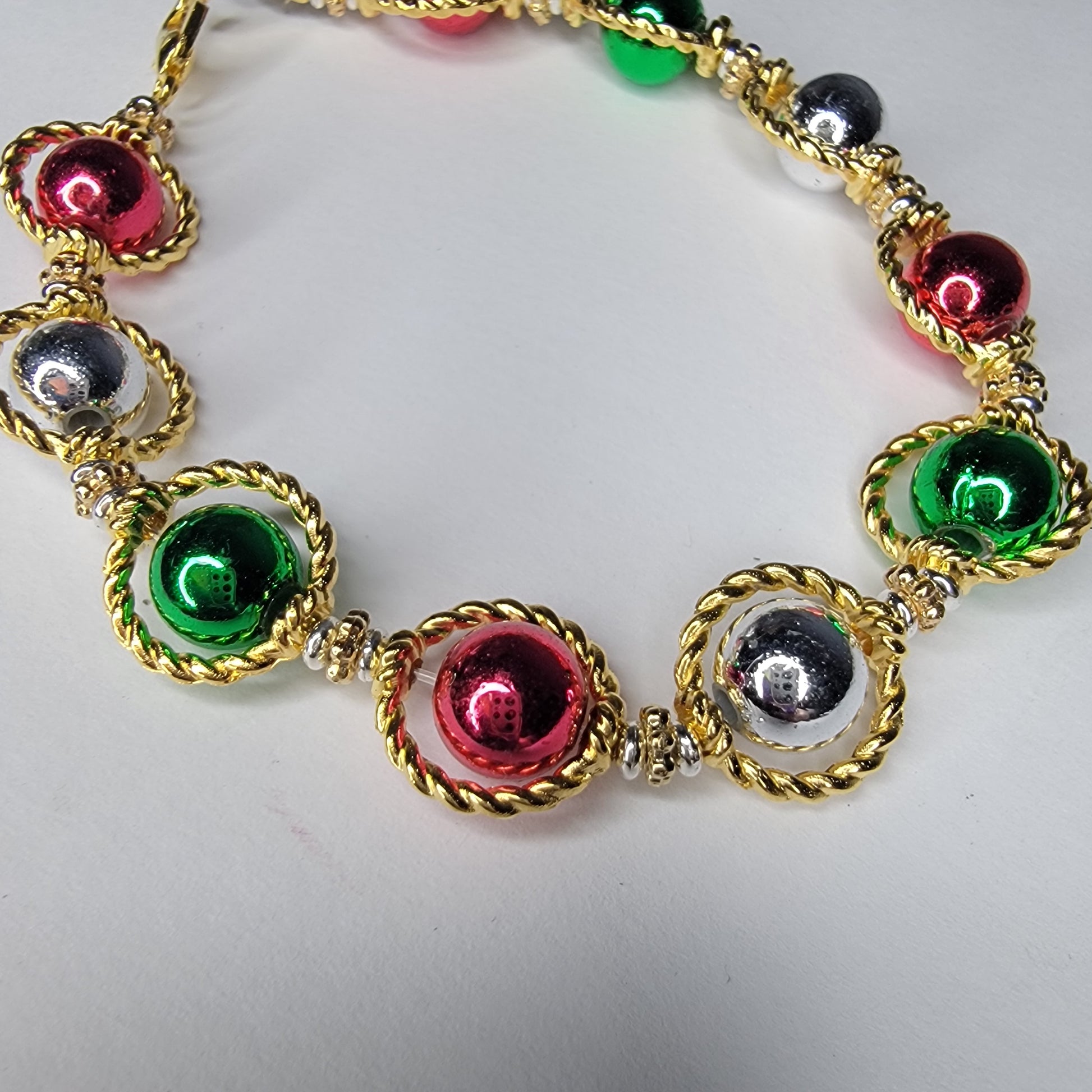 This handmade beaded Christmas bracelet showcases traditional holiday colors and intricate beadwork. It is a unique and festive accessory that adds charm and warmth to any outfit. Handcrafted with care, this bracelet is the perfect addition to your holiday wardrobe.