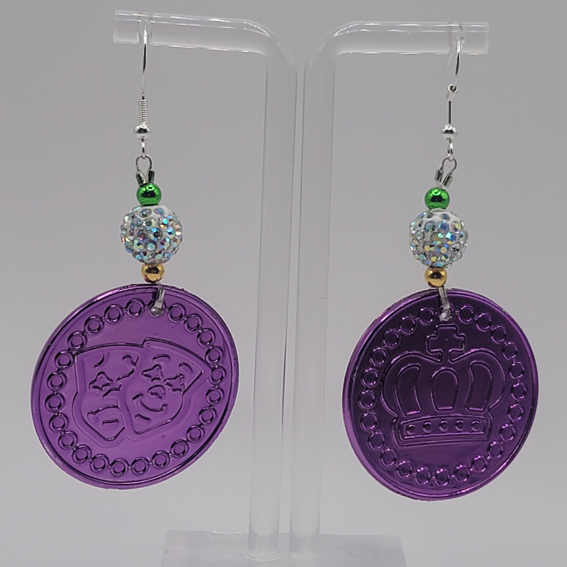 Add some playful pizzazz to your outfit with our Handmade Doubloon Dangle Earrings! These unique earrings feature beaded accents and are perfect for Mardi Gras festivities. Handcrafted with love, they'll add a touch of quirk to your look.