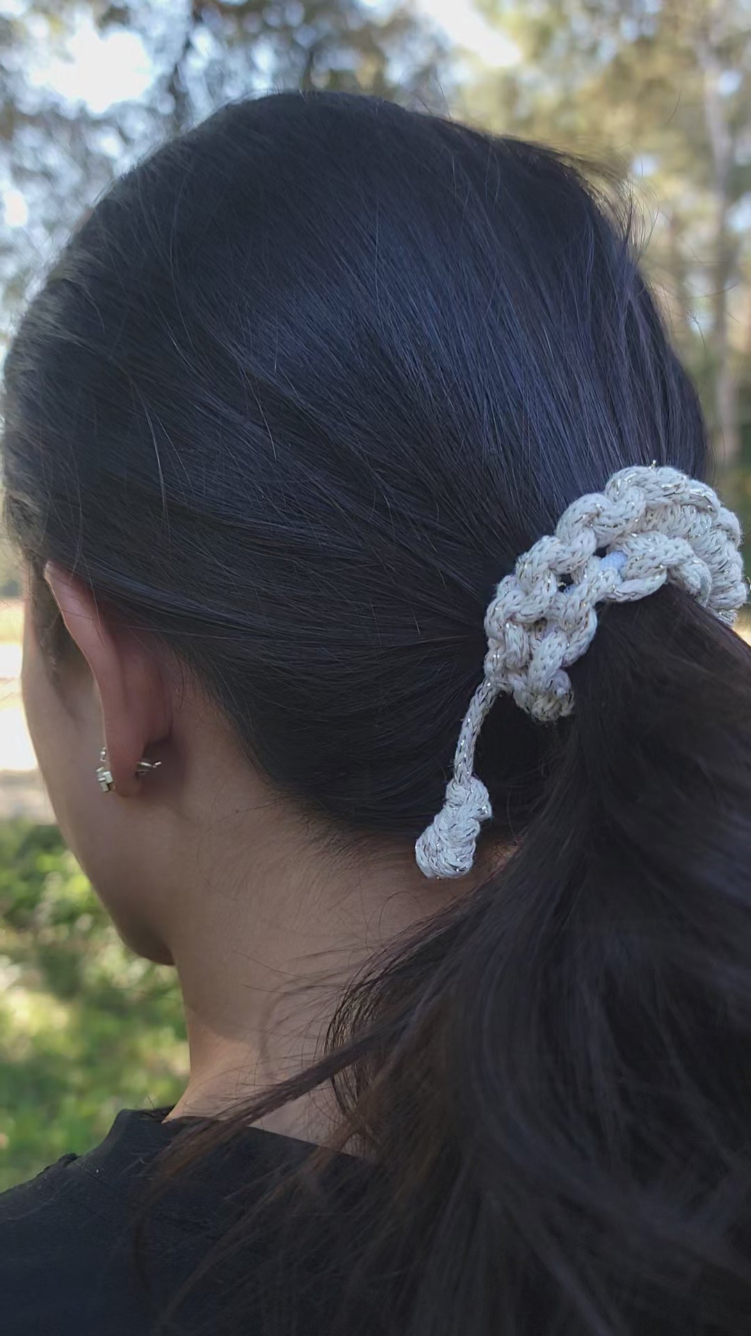 Handmade Macrame Hair Ties, available in a multitude of colors, can be purchased for $6 each, with or without the addition of tassels, or at a discounted bulk rate of 5 for $25.
