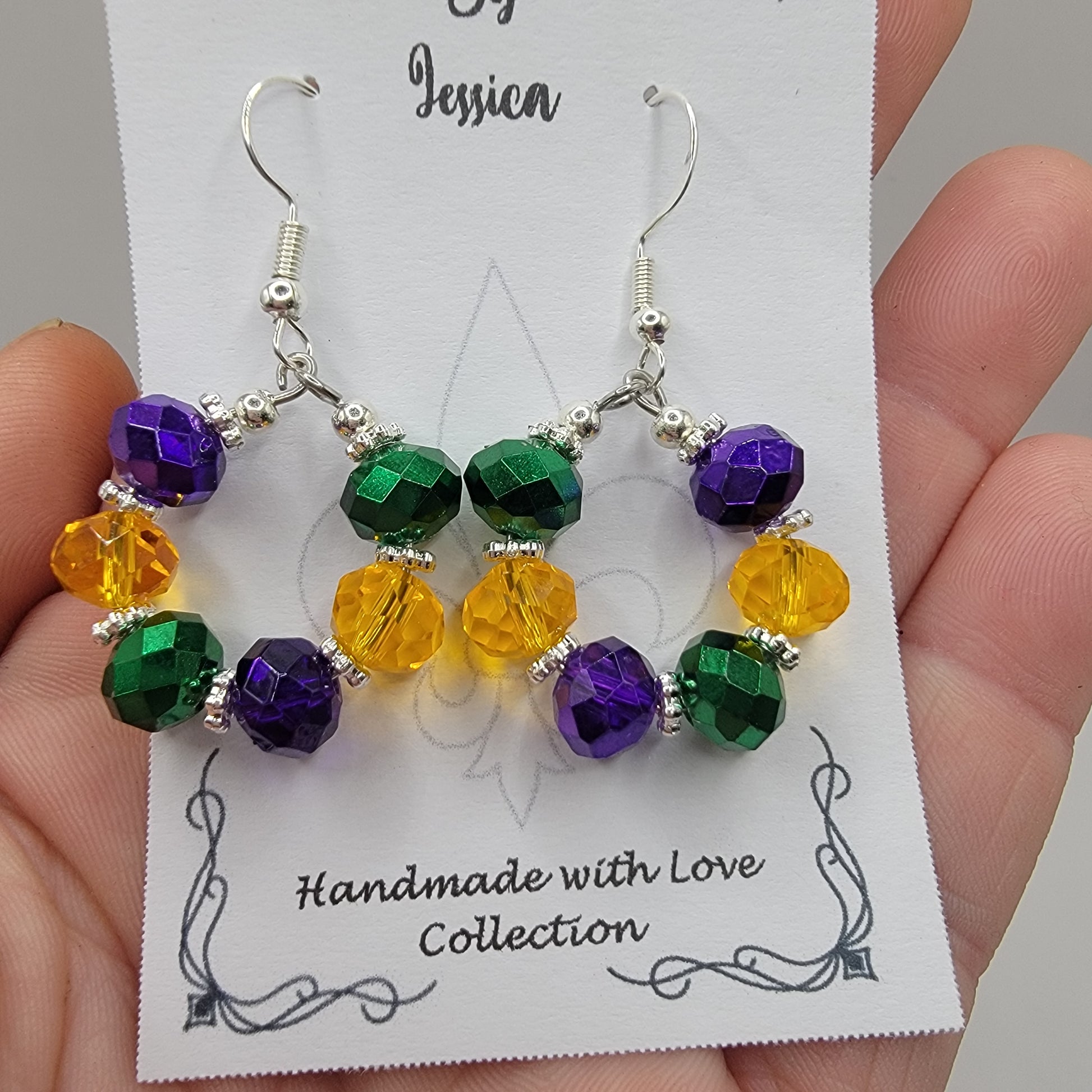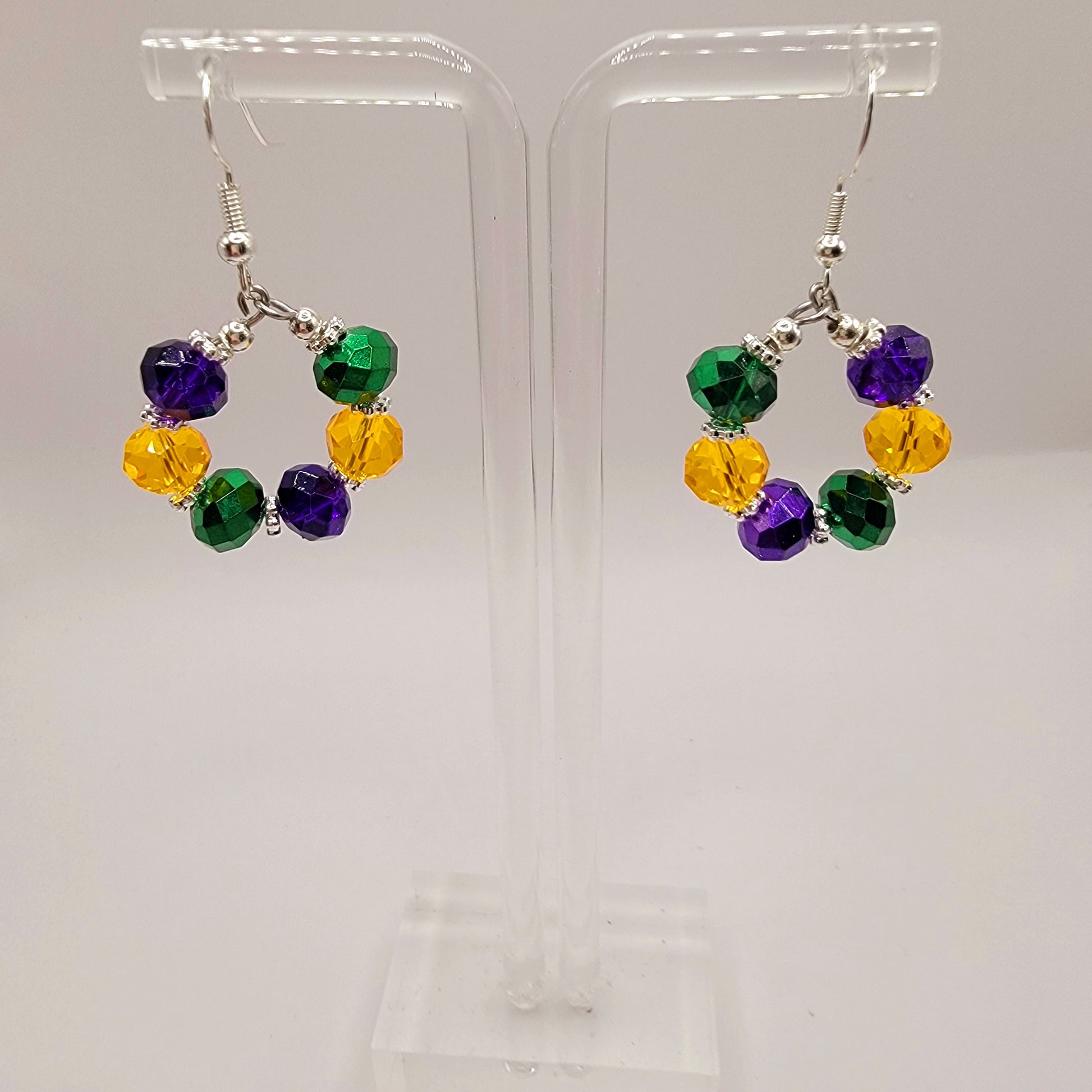 Indulge in the festive spirit of Mardi Gras with our Handmade Purple, Gold and Green Beaded Hoop earrings. These eclectic hoops are adorned with vibrant colors and crafted with sterling silver hooks for a touch of elegance. Perfect for adding a pop of color and charm to any outfit.