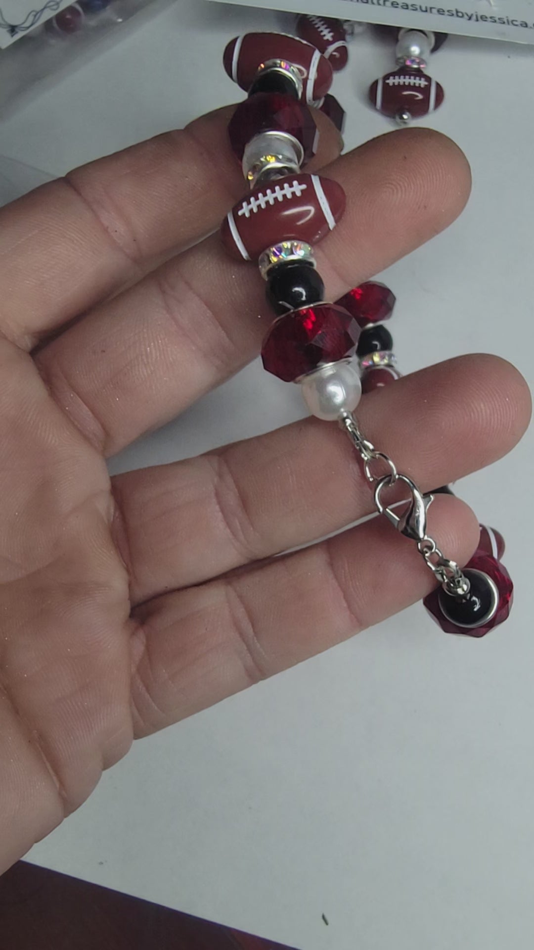 "Show off your love for football with our Handmade Red, Black and White Beaded Football Bracelet! Handcrafted with vibrant colors, this bracelet is the perfect accessory for game day or any casual occasion. Wear it proudly and add a touch of team spirit to your outfit. Support your team in style!"