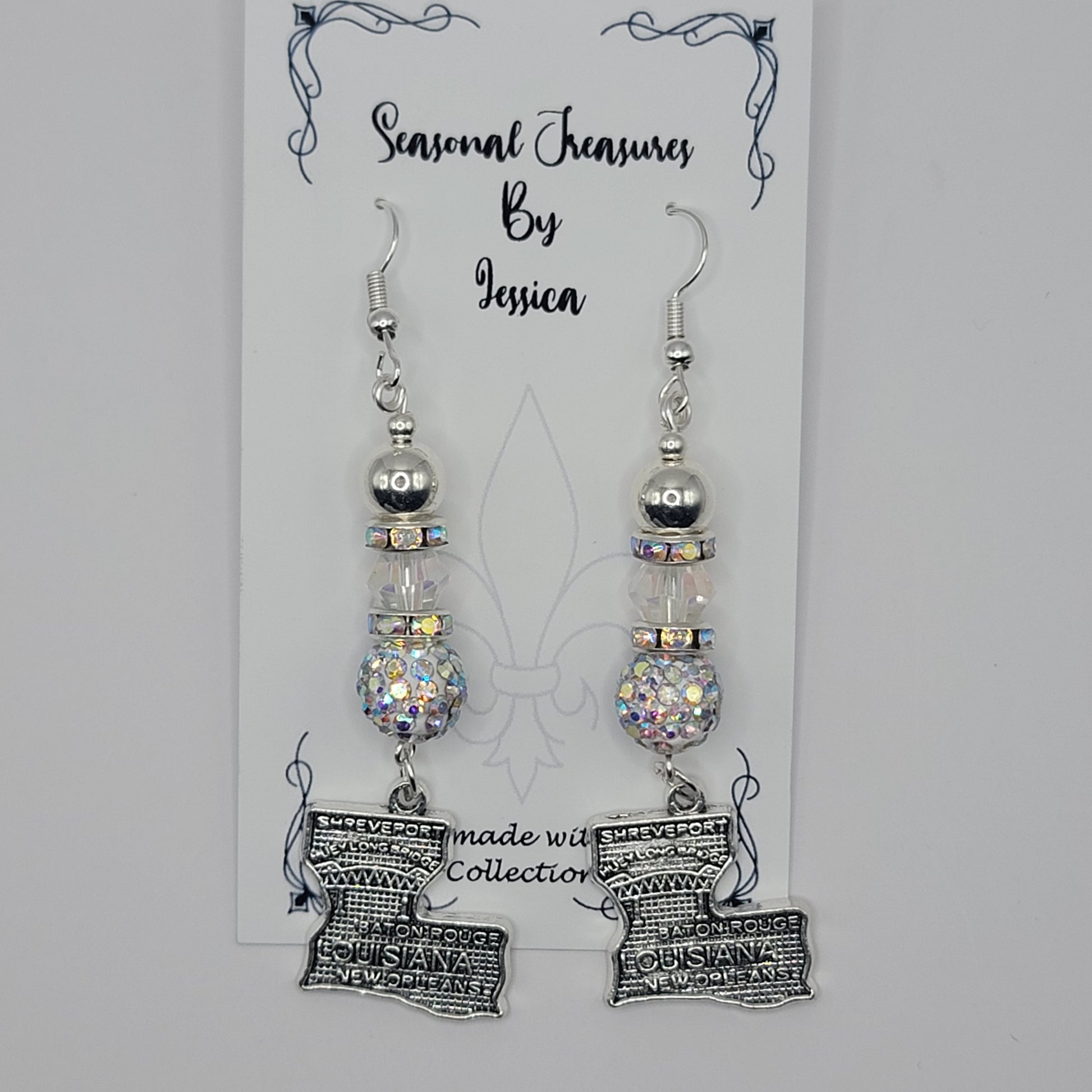 Louisiana Beaded Earrings with Louisiana Charm in silver