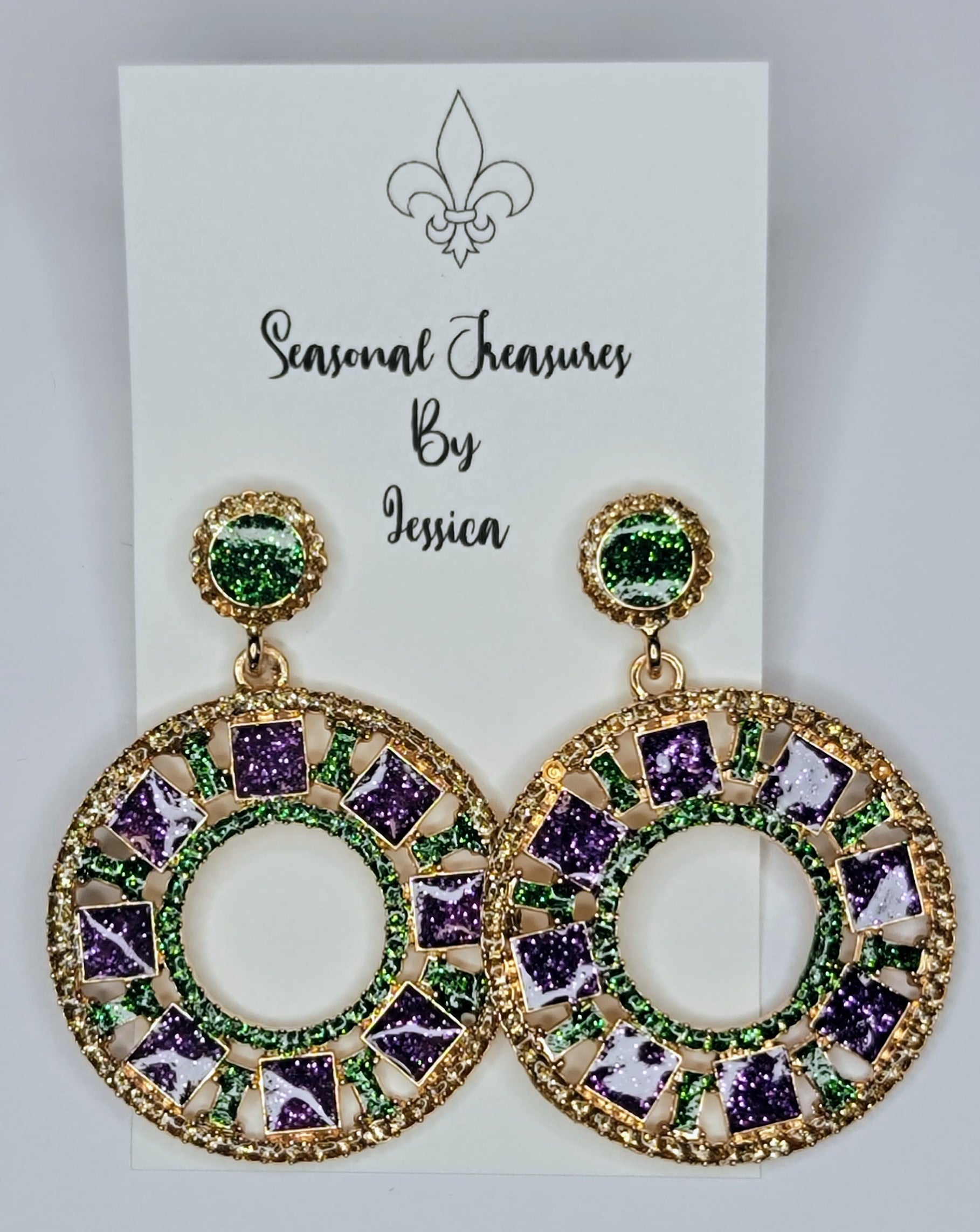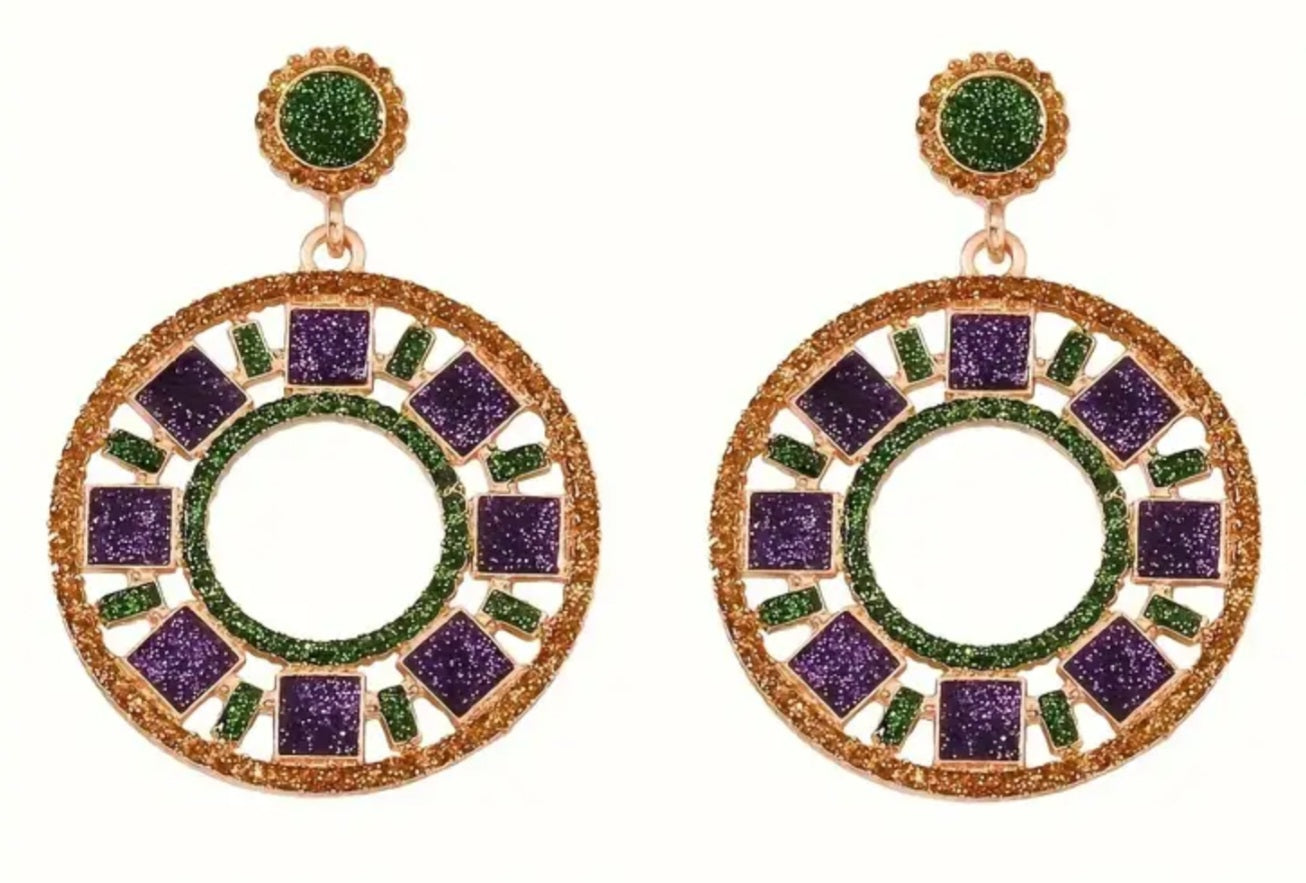 Mardi Gras King Cake jewel earrings.